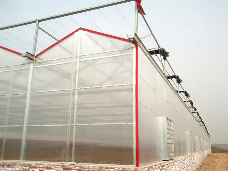陽光板溫室多為文洛型(也可以采用圓拱形),多采用一跨多頂,外形現代,結構穩定,形式美觀大方,視覺流暢,保溫性能卓越,透光率適中,多雨槽,大跨度,排水量大,抗風能力強,適合于風力與雨量較大地區。陽光板溫室,具有透光度好,熱傳導系數低,由于陽光板分量輕,壽命長,拉伸強度大,通過簡單的鋼骨結構就能滿足抗風、抗雪的要求,并且壽命長,美觀大方,減少重復建設及投資,是替代原始的塑料薄膜溫室與玻璃溫室的首選產品?