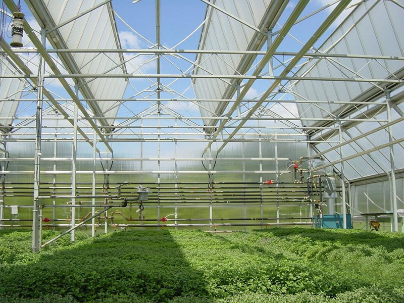 陽光板溫室多為文洛型(也可以采用圓拱形),多采用一跨多頂,外形現代,結構穩定,形式美觀大方,視覺流暢,保溫性能卓越,透光率適中,多雨槽,大跨度,排水量大,抗風能力強,適合于風力與雨量較大地區。陽光板溫室,具有透光度好,熱傳導系數低,由于陽光板分量輕,壽命長,拉伸強度大,通過簡單的鋼骨結構就能滿足抗風、抗雪的要求,并且壽命長,美觀大方,減少重復建設及投資,是替代原始的塑料薄膜溫室與玻璃溫室的首選產品?